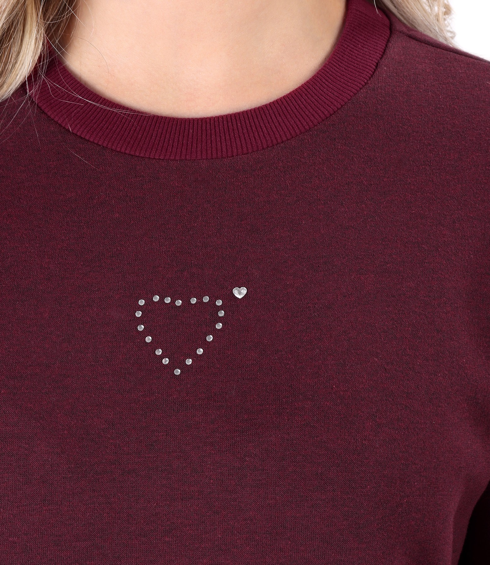 Dress made of thick cotton with front pocket, long sleeves and round decolletage with crystals inserts.