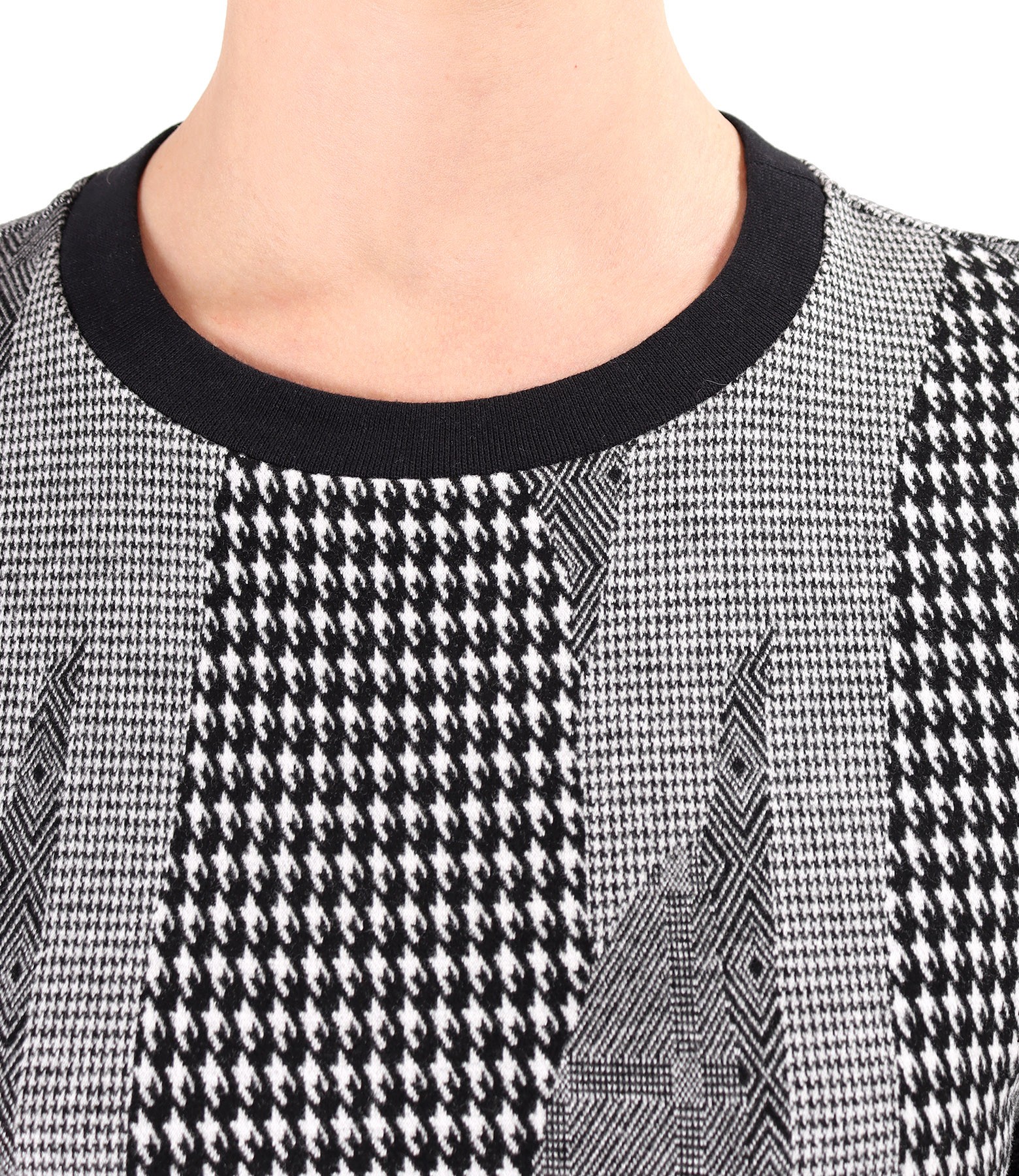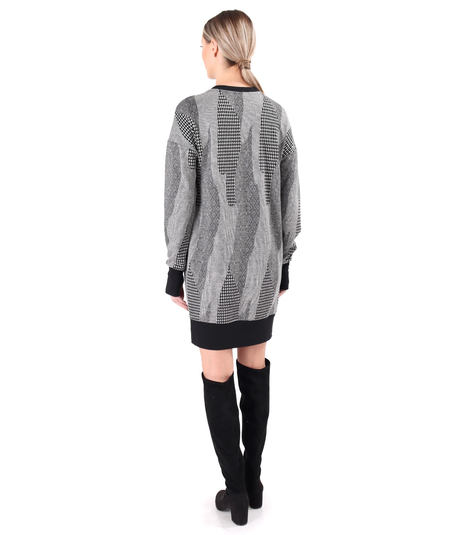Sweatshirt dress made of thick elastic viscose jersey, with long sleeves with contrasting cuffs and round neckline.