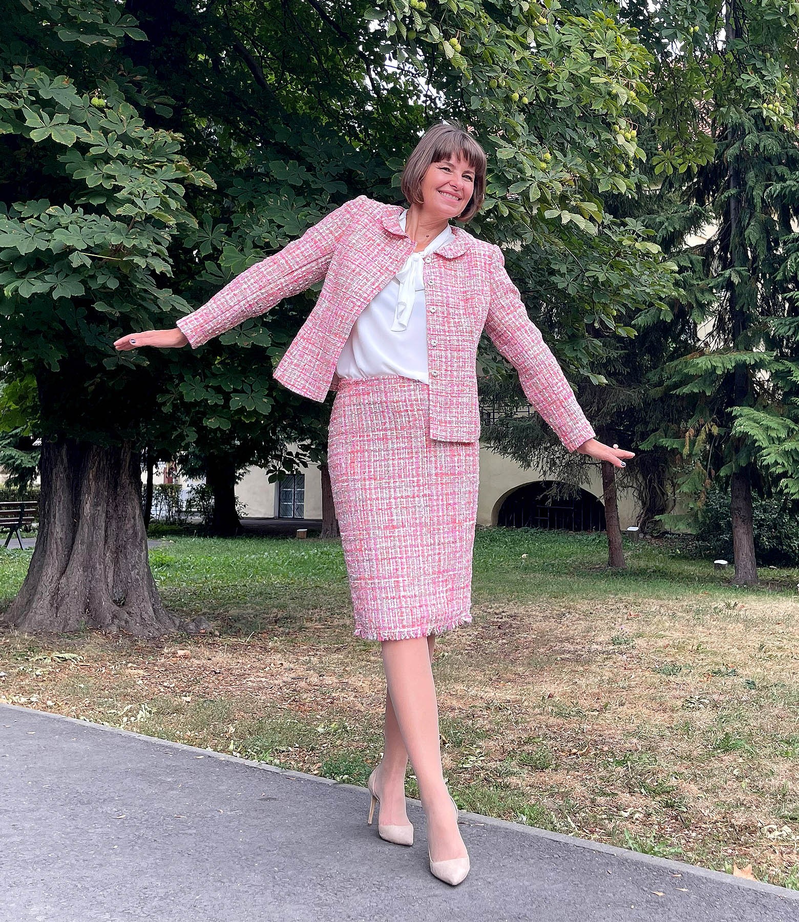 Tapered skirt made of multicolored curls with metallic thread (Pink), size