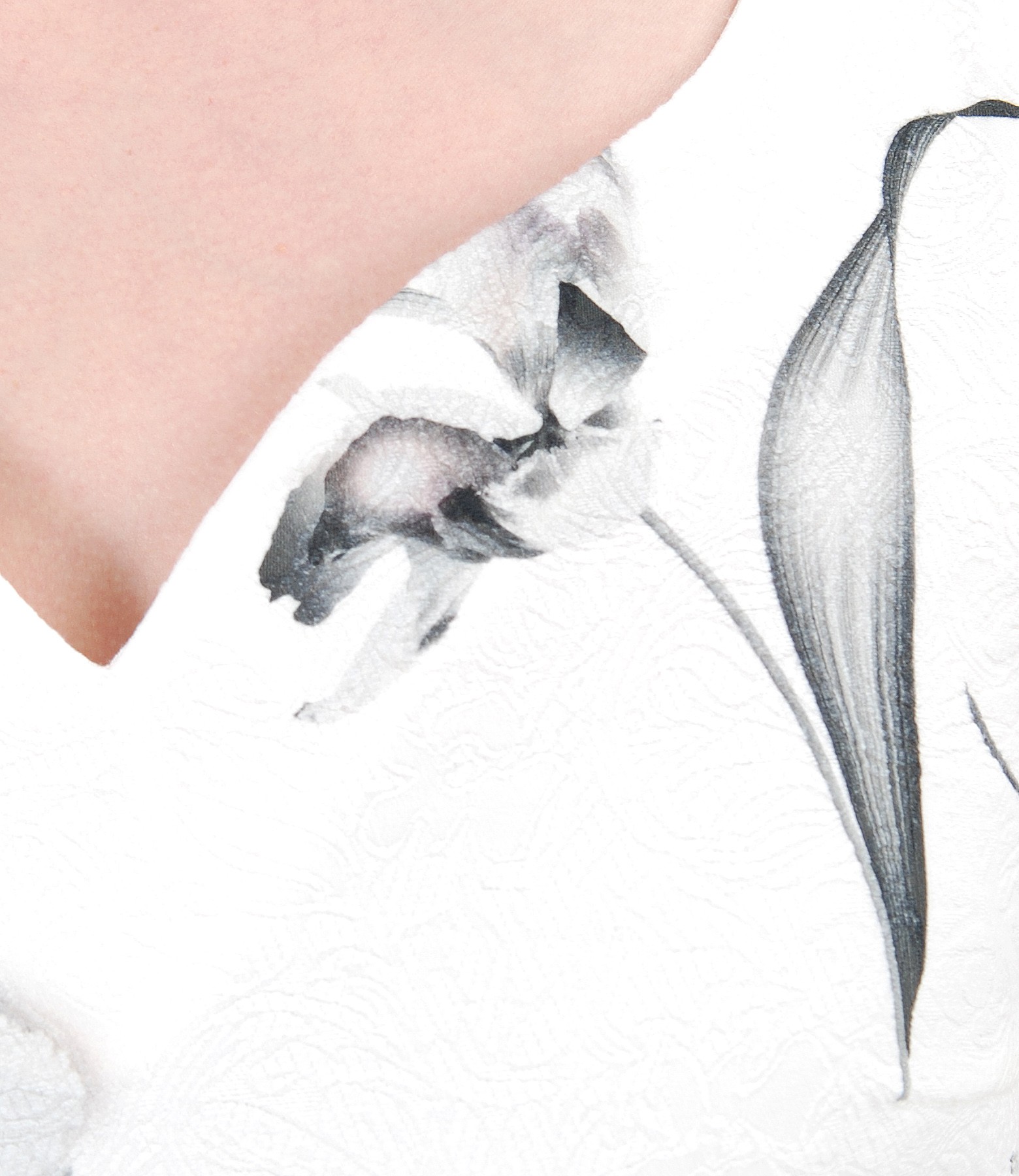 Dress made of elastic cotton brocade , with digital print with floral motifs, unlined , with side pockets and short sleeves. Have no closing system.