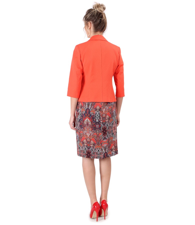 Office jacket made of textured elastic cotton,unlined,arched and 3/4 sleeves.