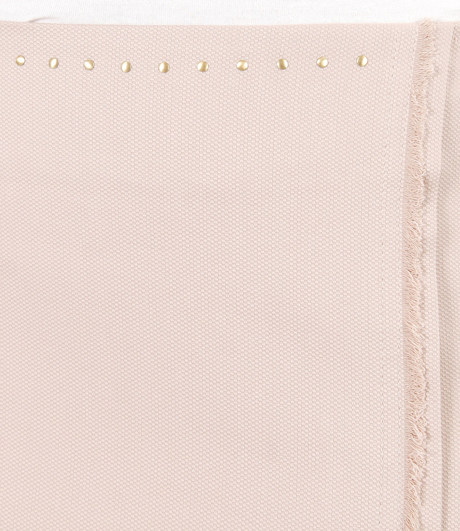 Textured cotton tapered skirt, padded with viscose, with front slit, with fringe and metal staples embellished with crystals. Closes with hidden zipper on the middle back.