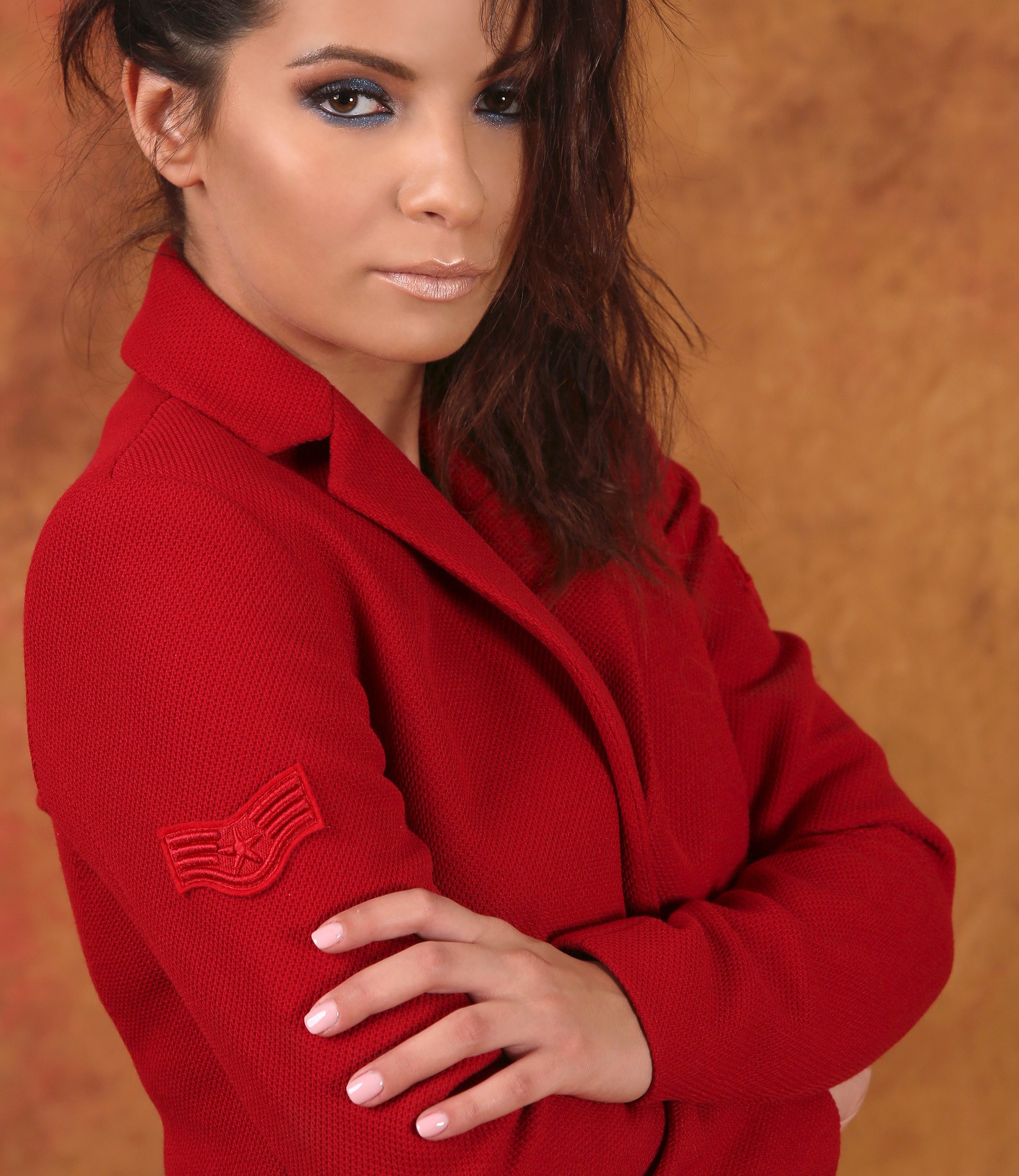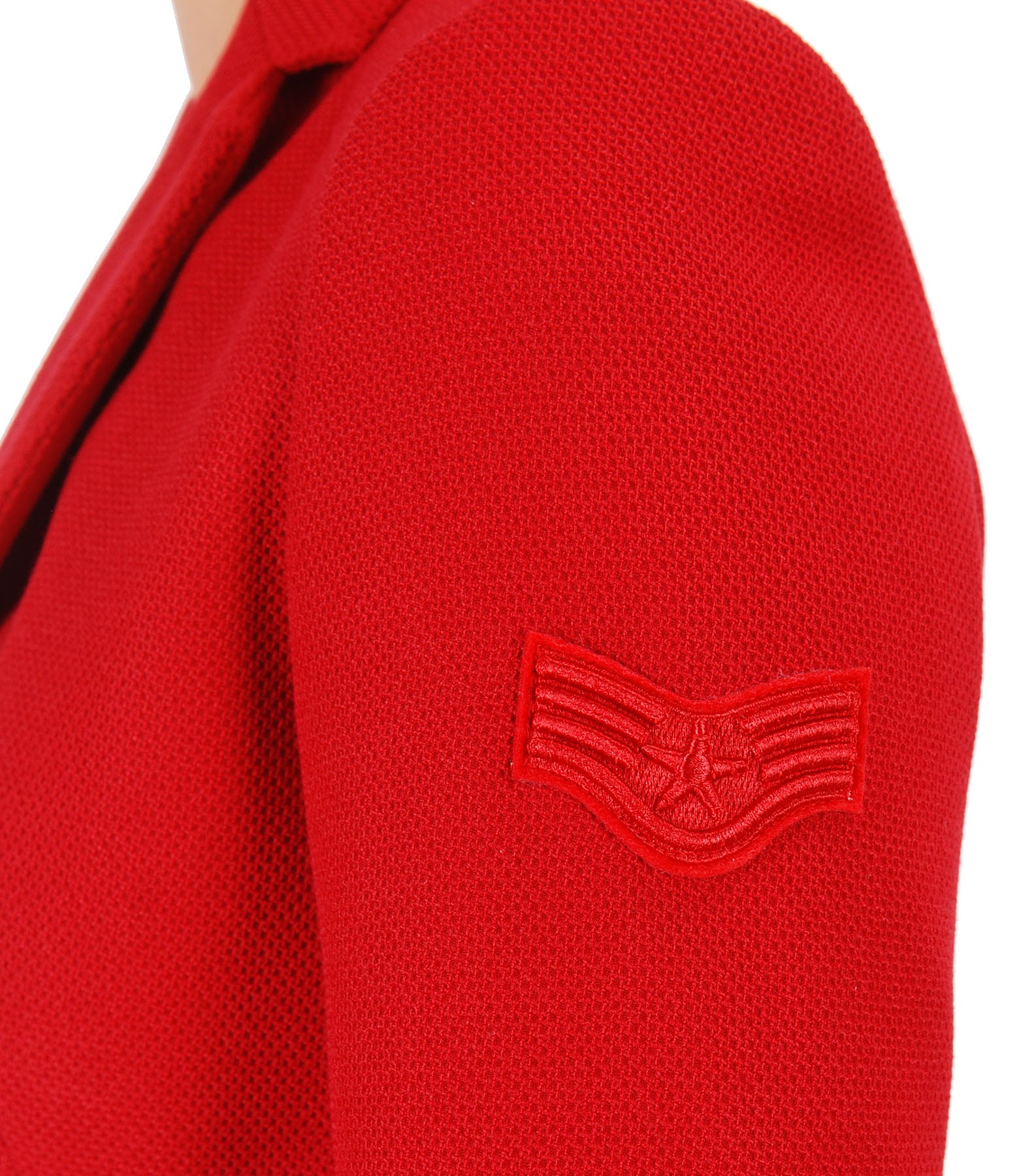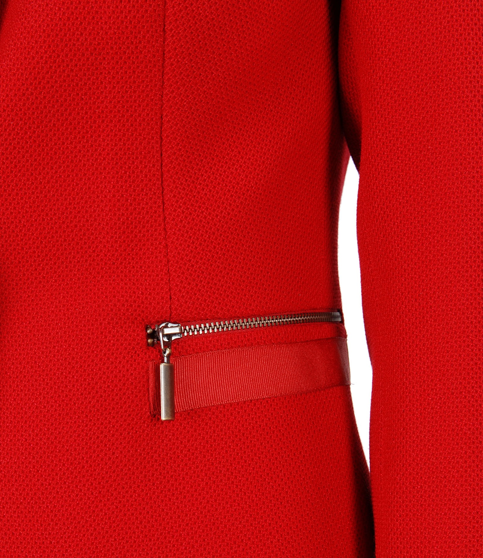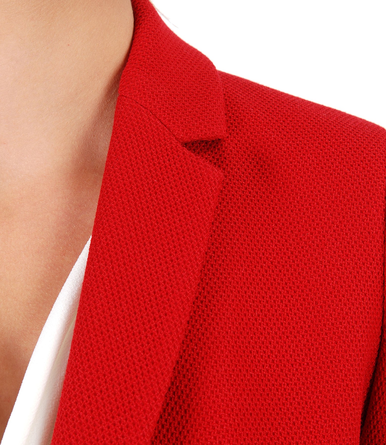 Textured fabric office jacket, padded, with deep low-cut neck, pockets with zipper waist and rips band. Closes with two front buttons.