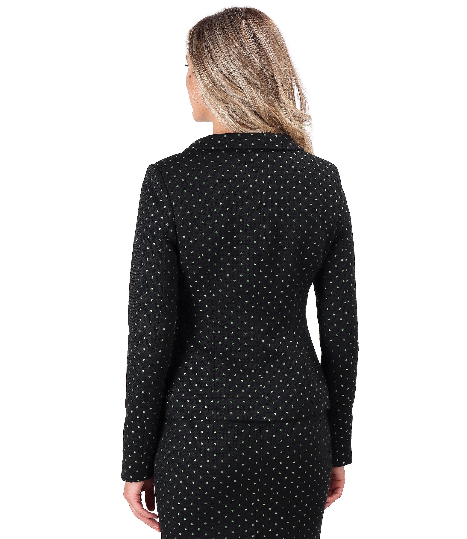 Thick brocade cotton office jacket with detachable brooch at the neckline (Green), size