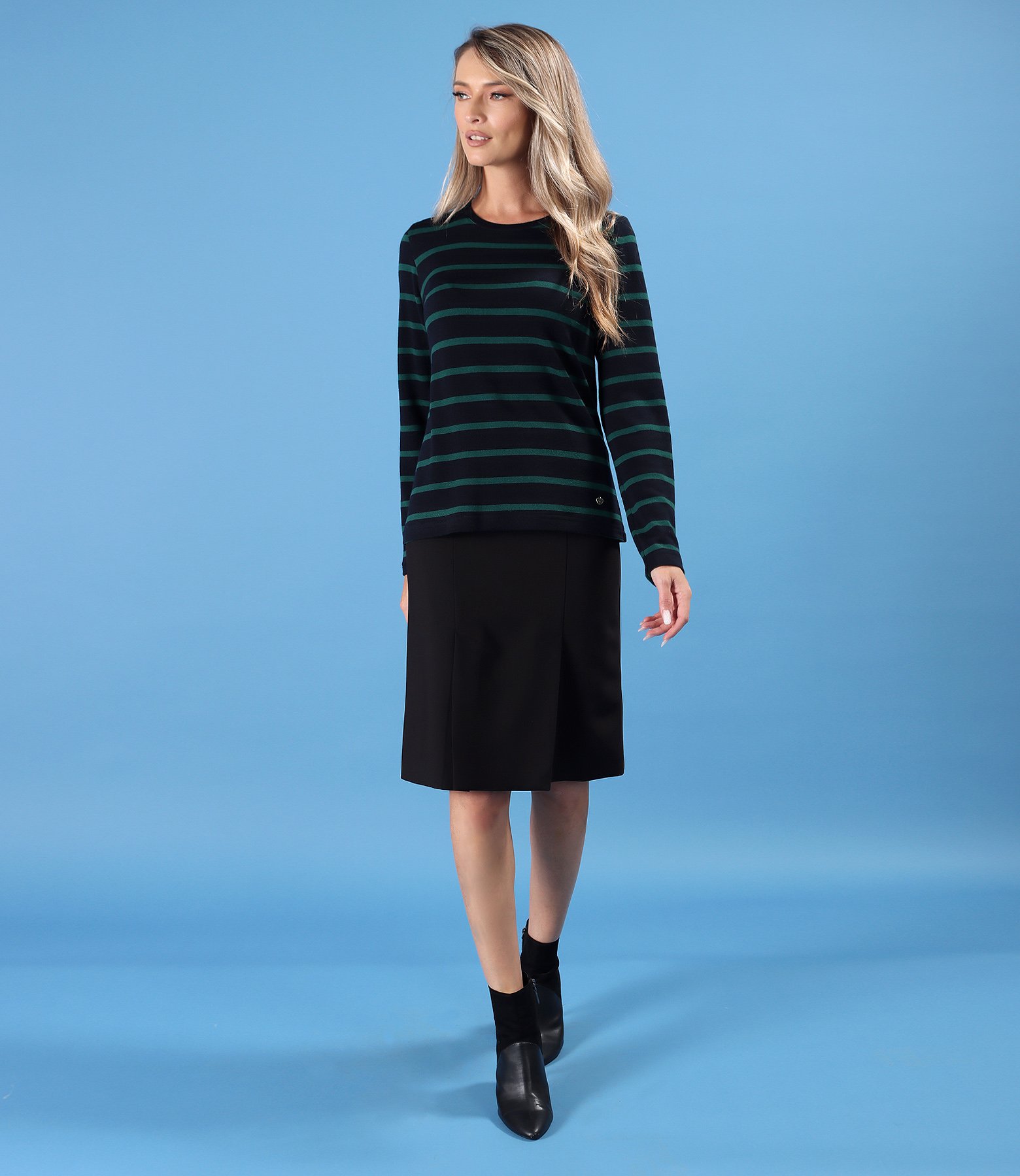Blouse made of thick elastic jersey with wool, with stripes, with long sleeves and a round neckline.