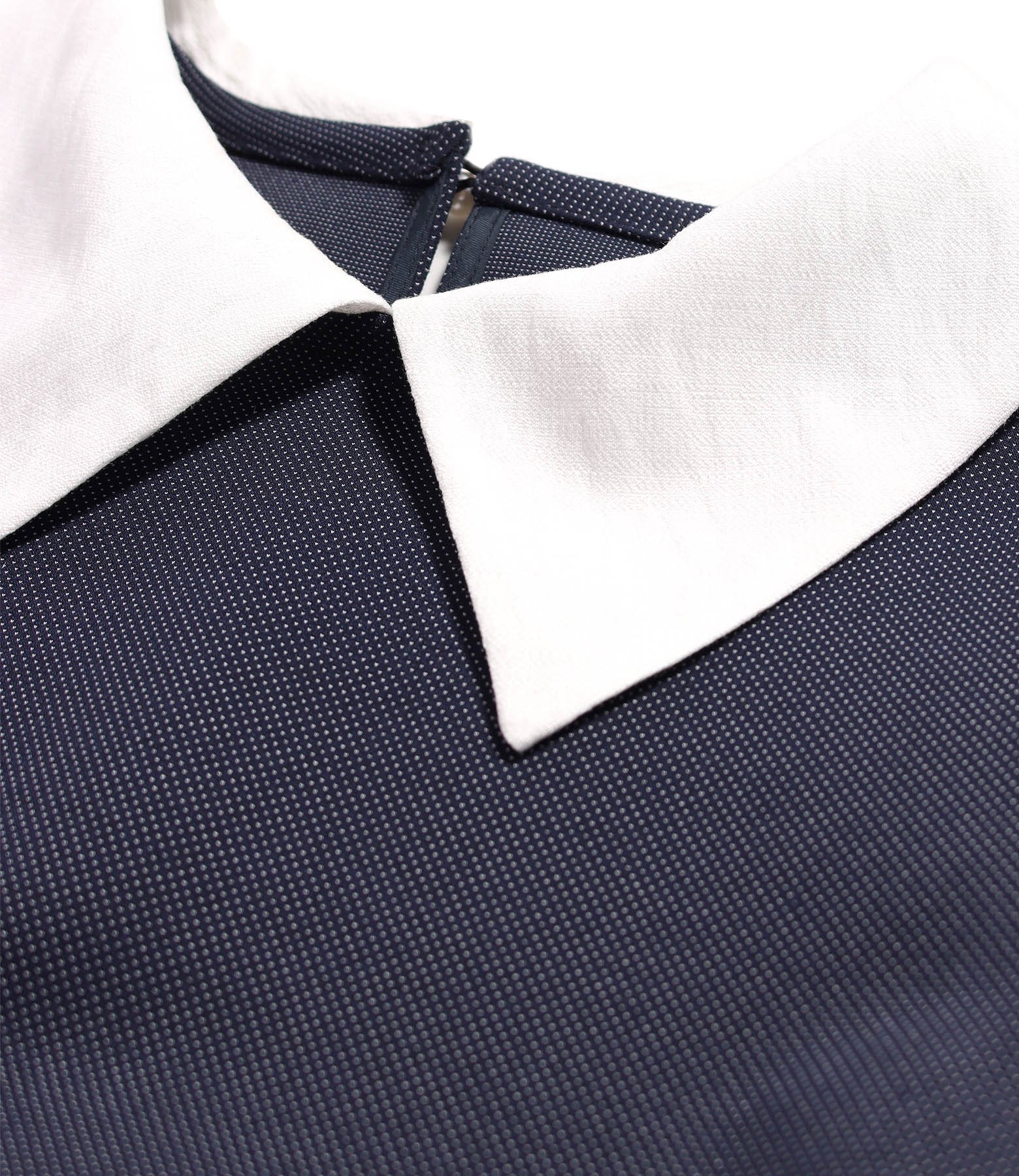 Thick elastic jersey office dress with white collar (Navy blue), size
