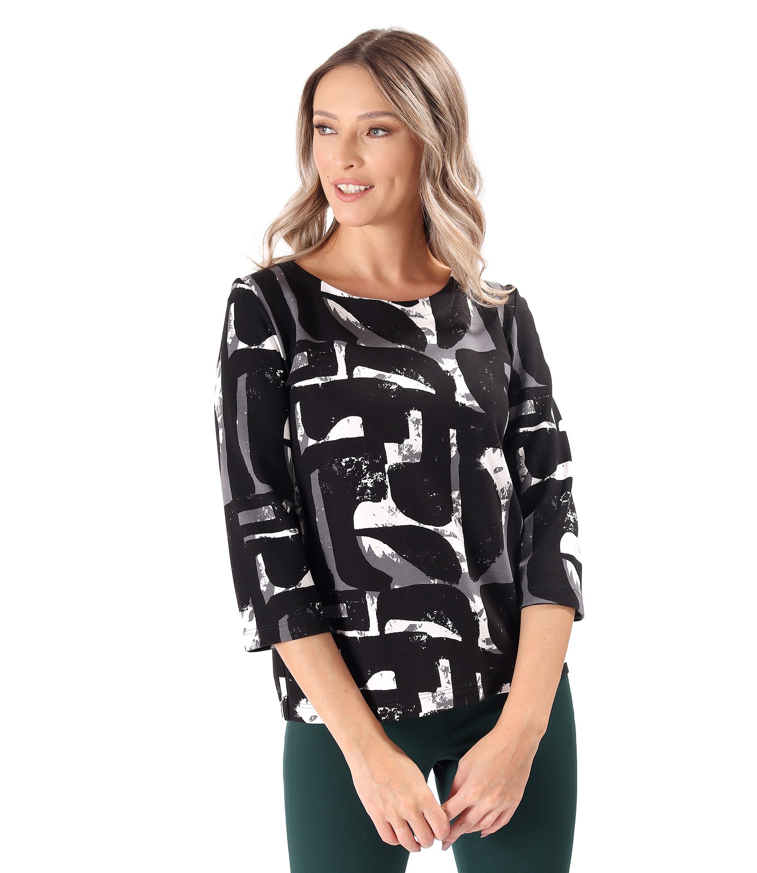 Thick Jersey Blouse with Geometric Print