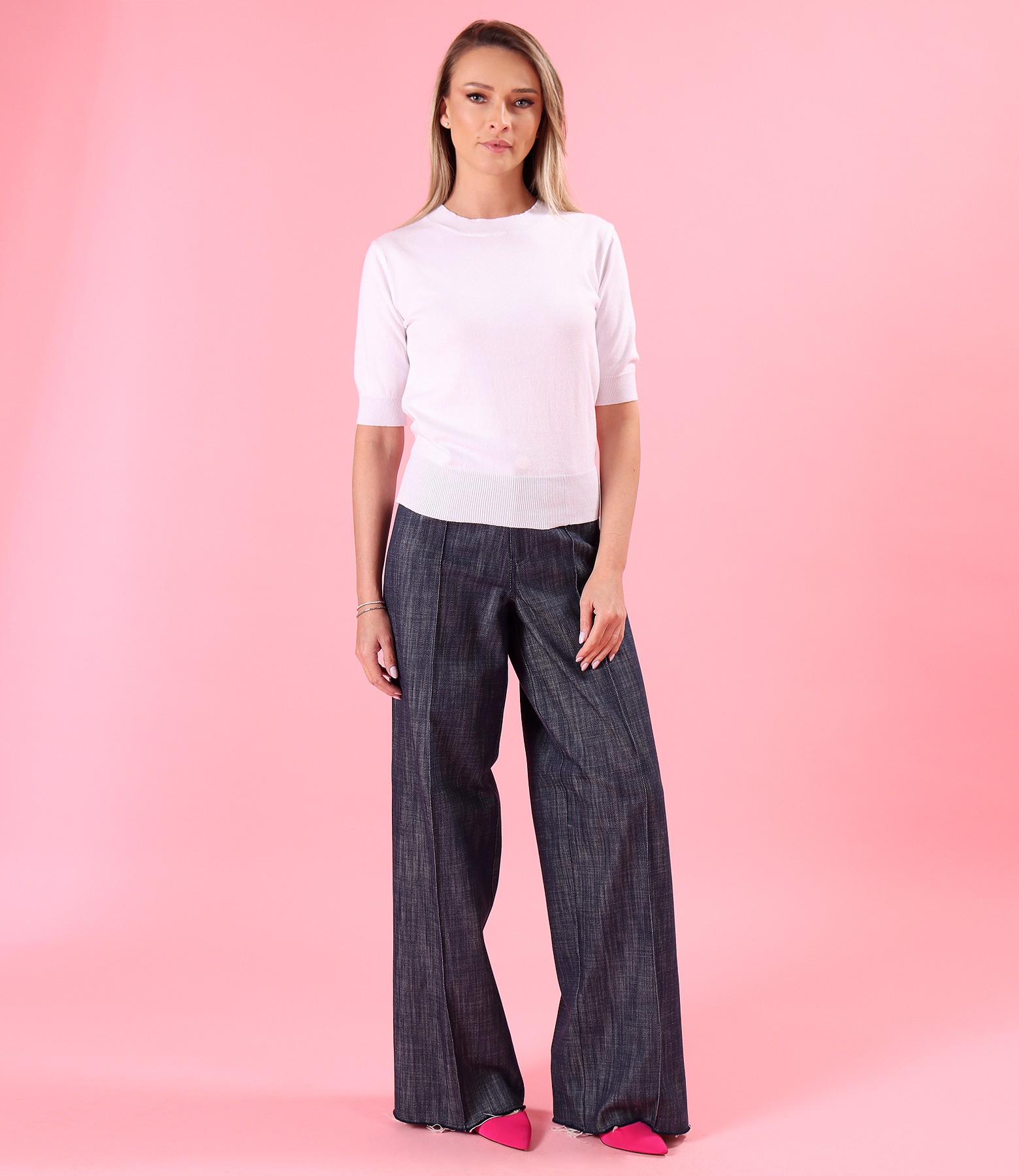 Tinuta smart casual cu pantaloni largi din denim cu bluza tricotata fin (), size