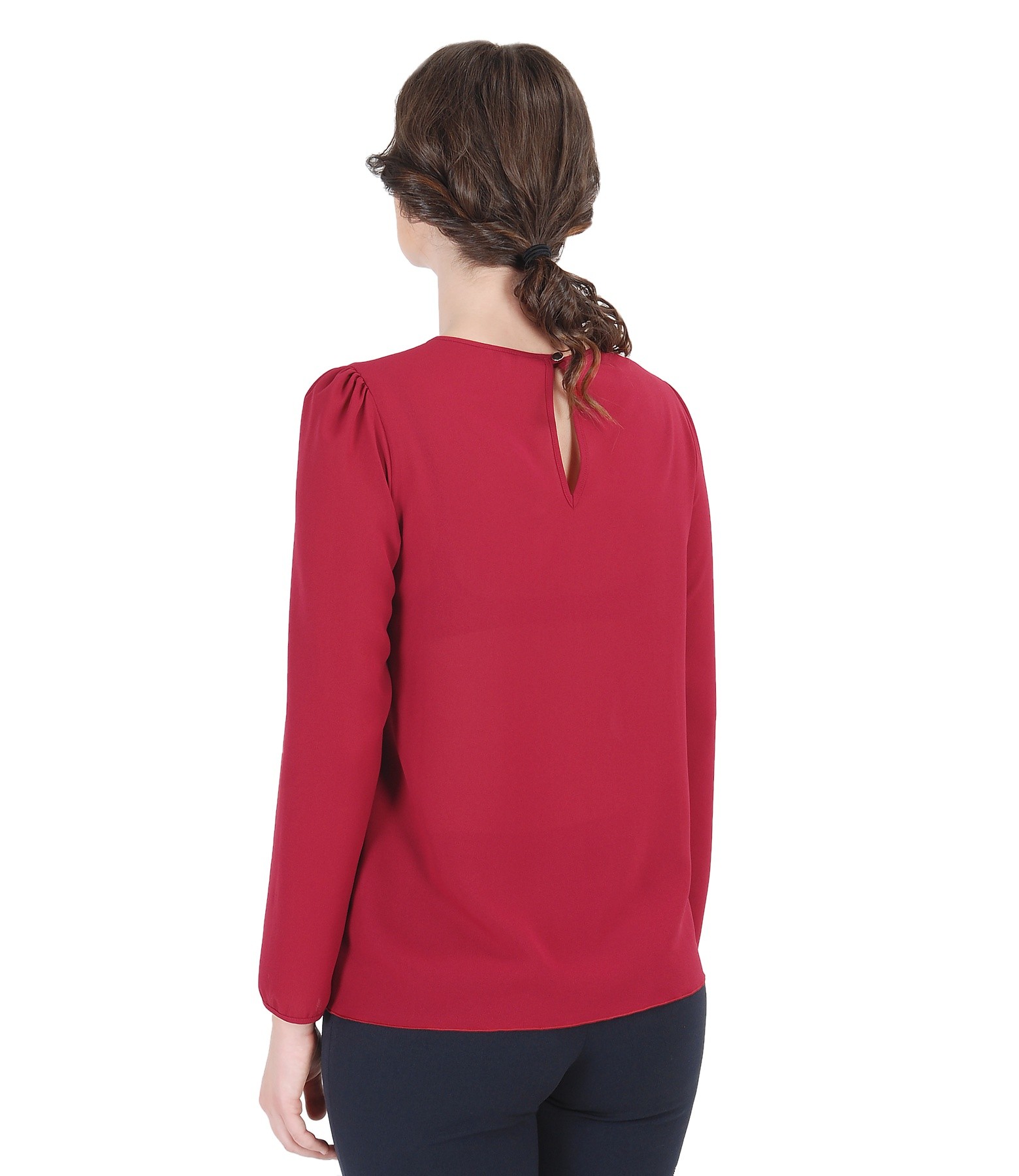 Casual veil blouse, with long sleeves and front dodge. It closes with a button in the middle back.