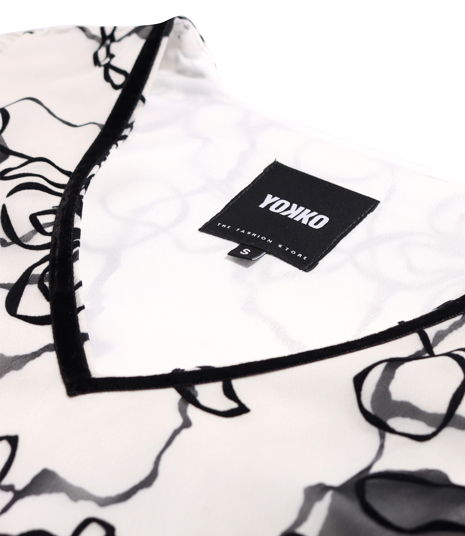 Veil blouse with floral motifs embroidered with velvet (Ivory), size