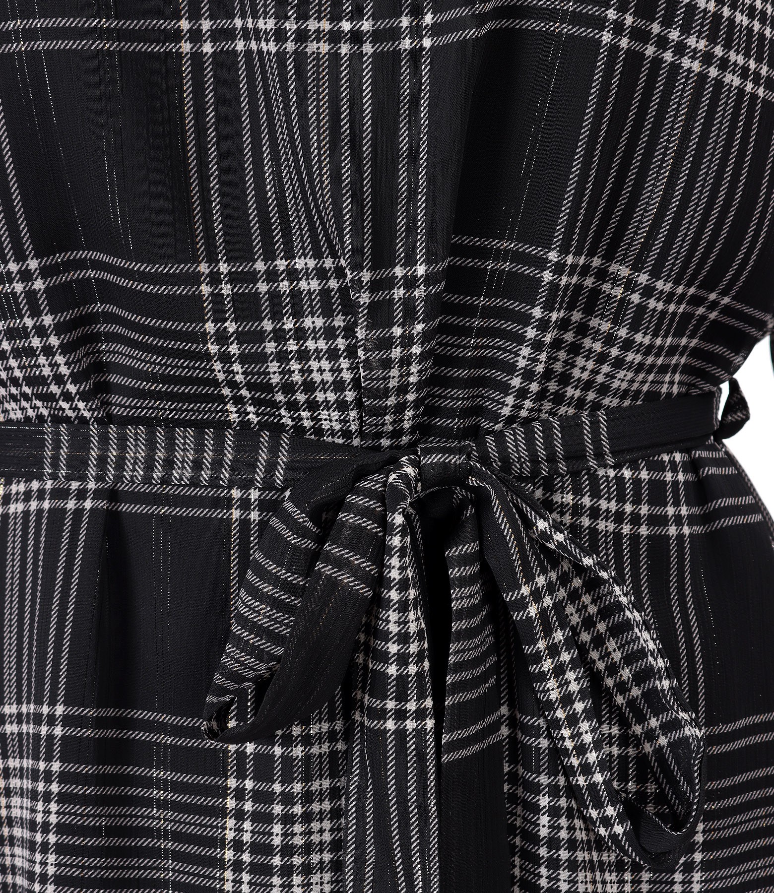 Casual veil dress plaid with effect thread,padded,with elastic neckline,3/4 sleeves and waist belt.