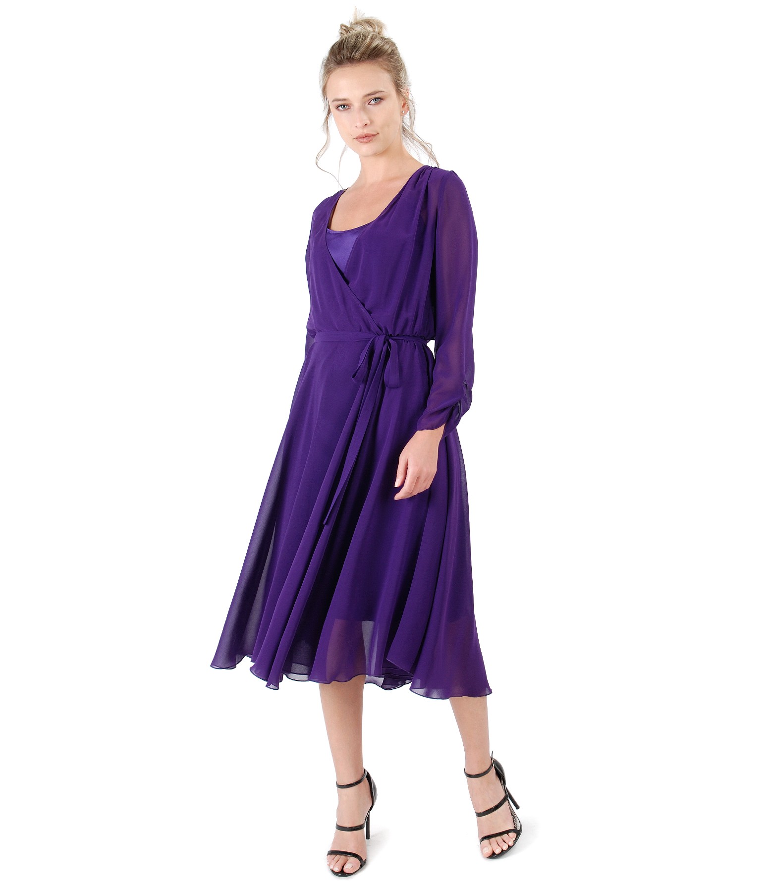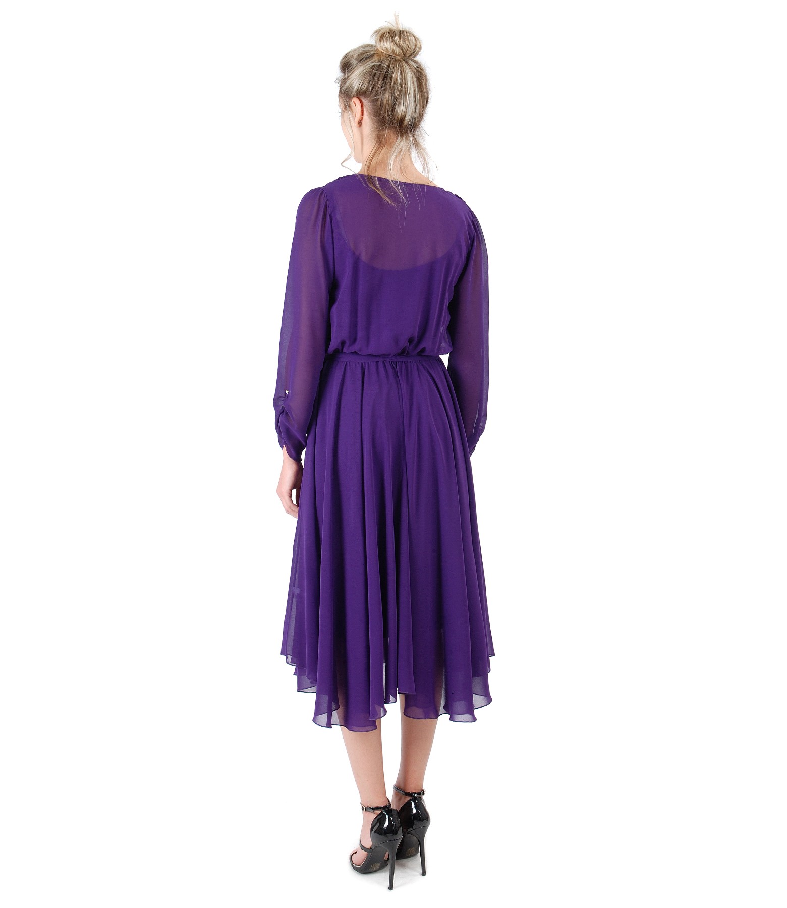 Veil dress with satin slip and crystals on the sleeve (Purple), size