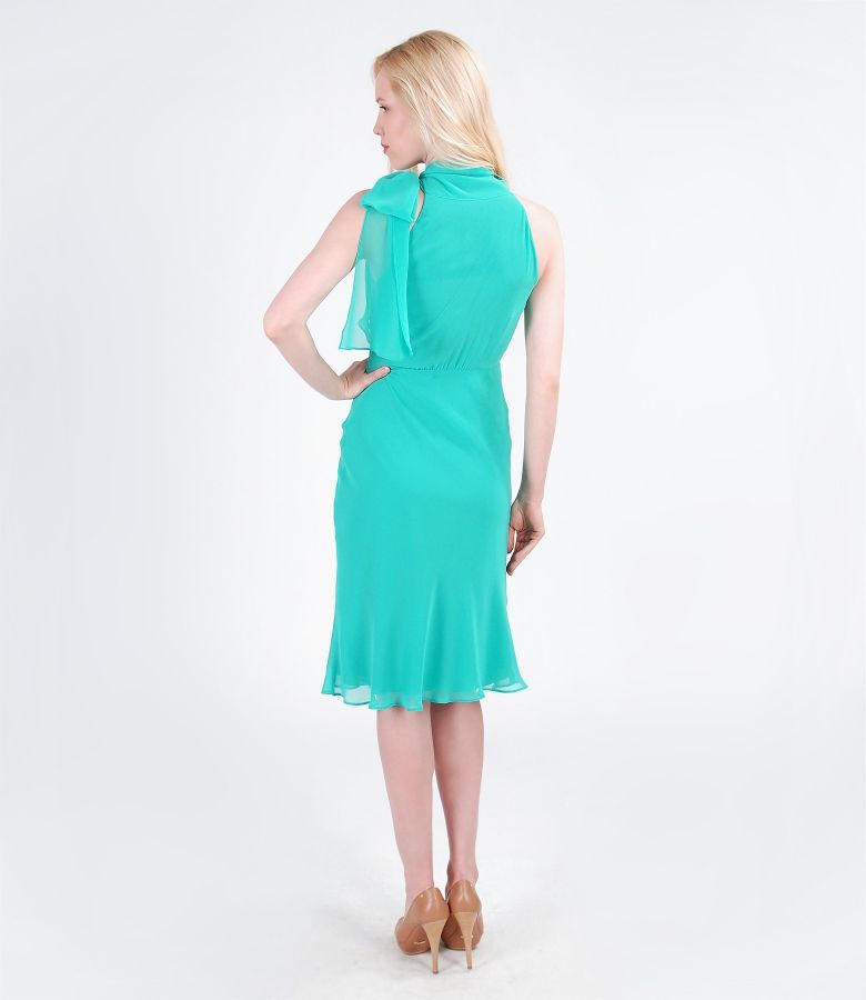 Light veil dress, with scarf, without sleeves. Closes with left-side concealed zip fastening.