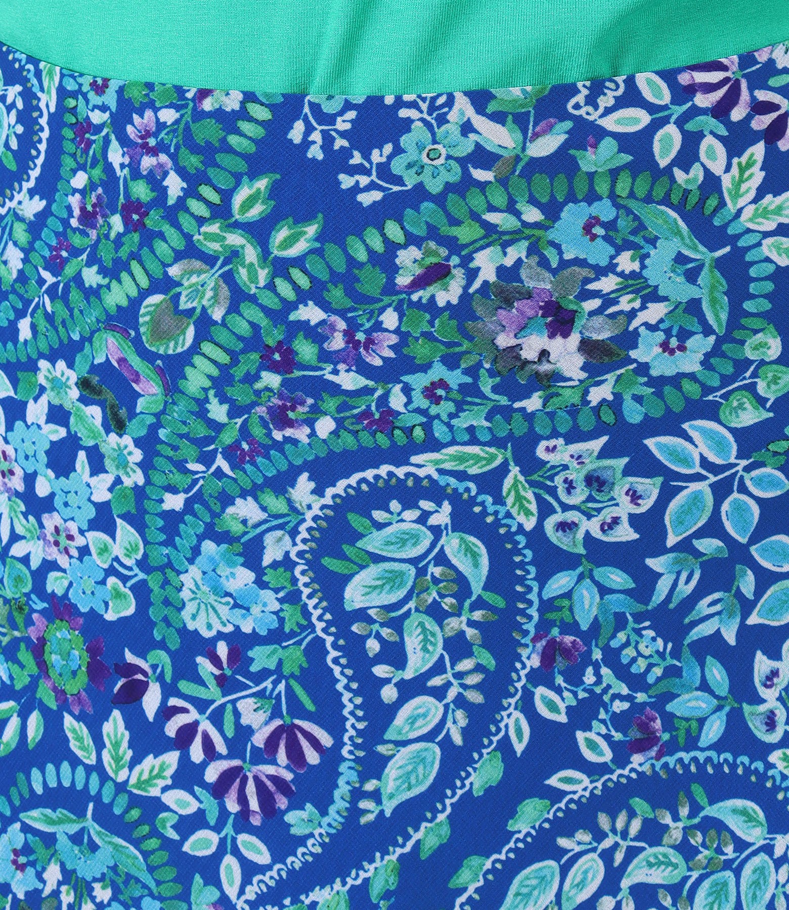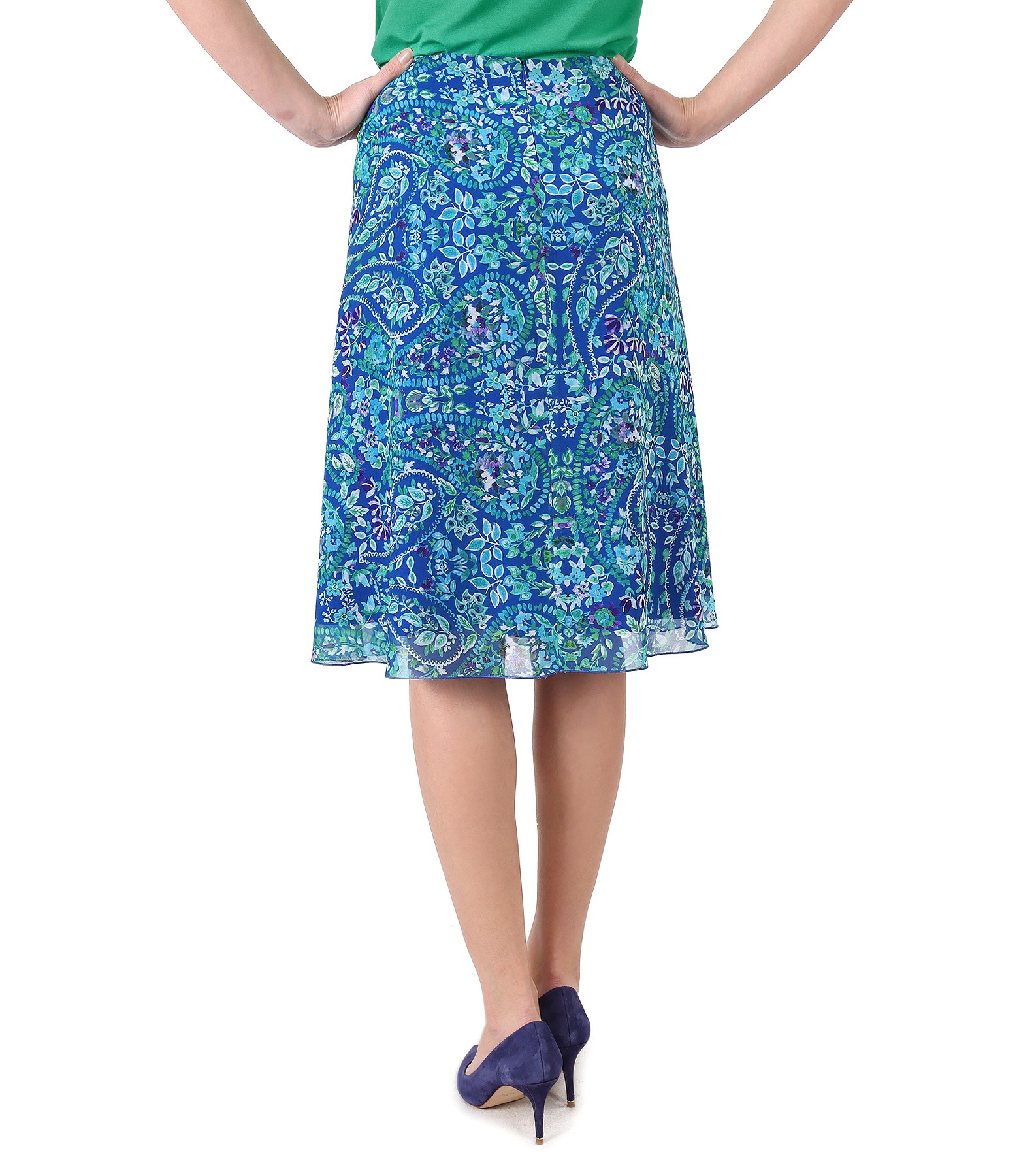 Veil skirt printed with flowers, doubled with viscose. Closes with a zipper hidden in the middle of the back.