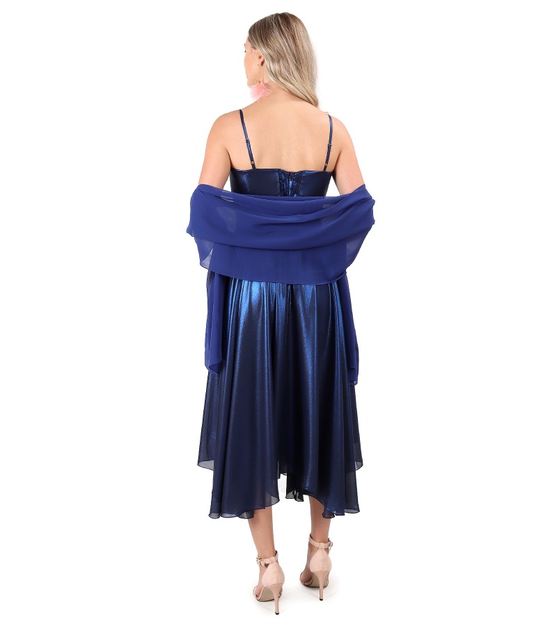 Occasion dress with a pearlescent veil skirt doubled with viscose and corset, with cups and adjustable straps and a bow at the waist.
