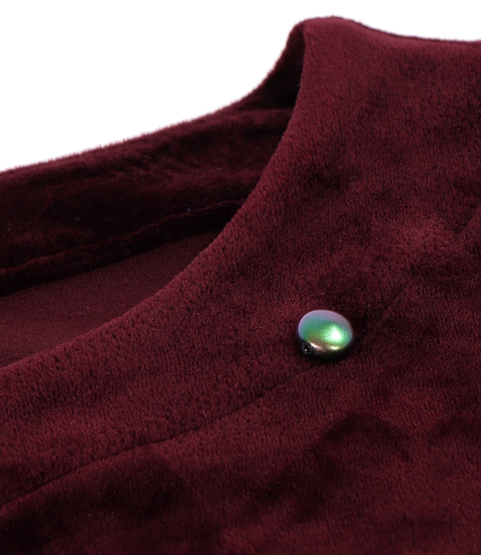 Elastic velvet dress, unlined, with long sleeves with elastic lining at the cuffs, side pockets and round decolletage with ® pearl.
