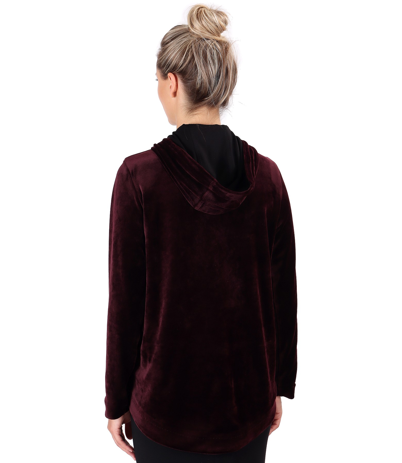 Velvet hoodie with elastic trim