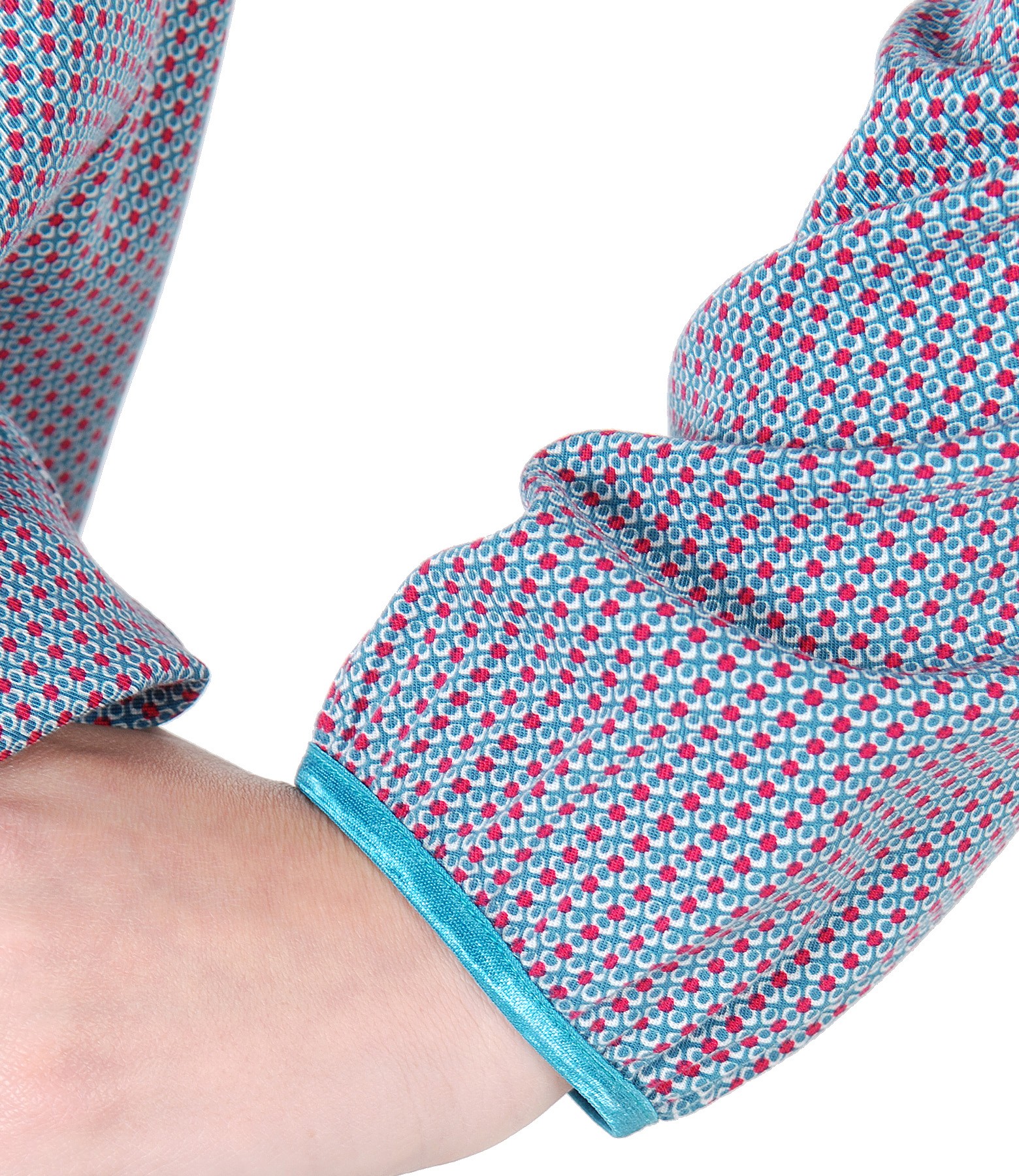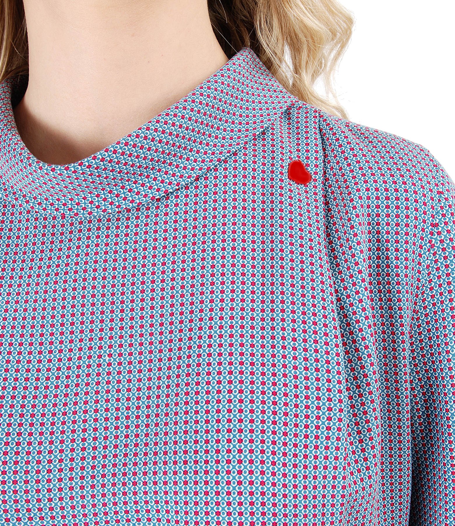 Viscose blouse, with geometric print, long sleeves, round low-cut neck, folds on the shoulders and elastic on the sleeve edge. Closes with a button on the middle back.