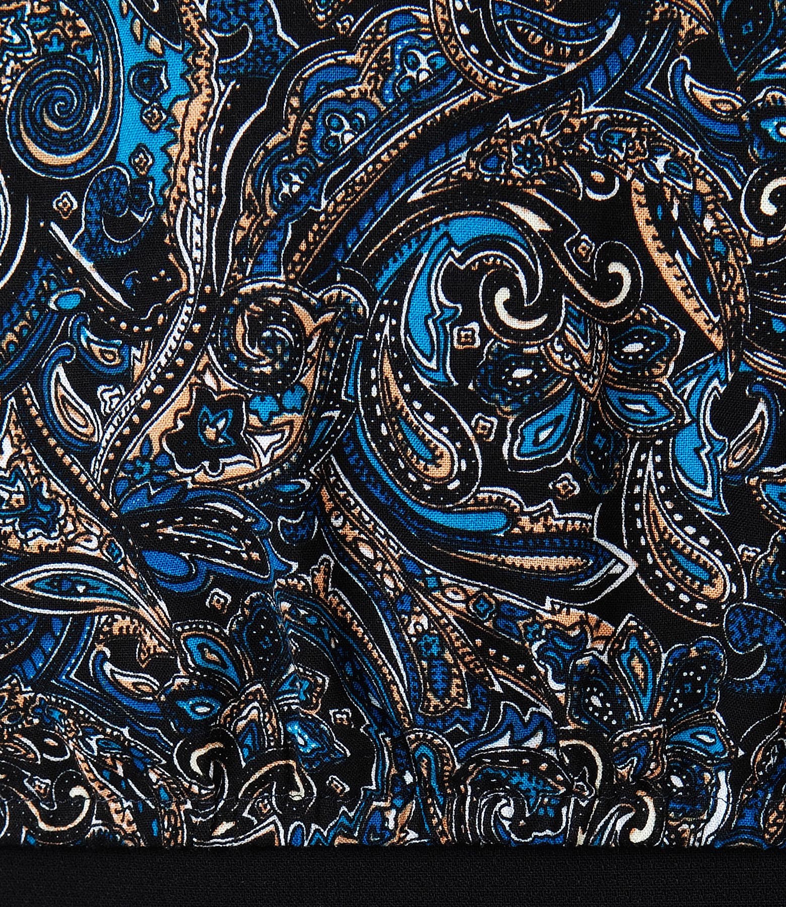 Viscose blouse with floral print, long sleeves with wristbands and round low-cut neck with V closed with a button.