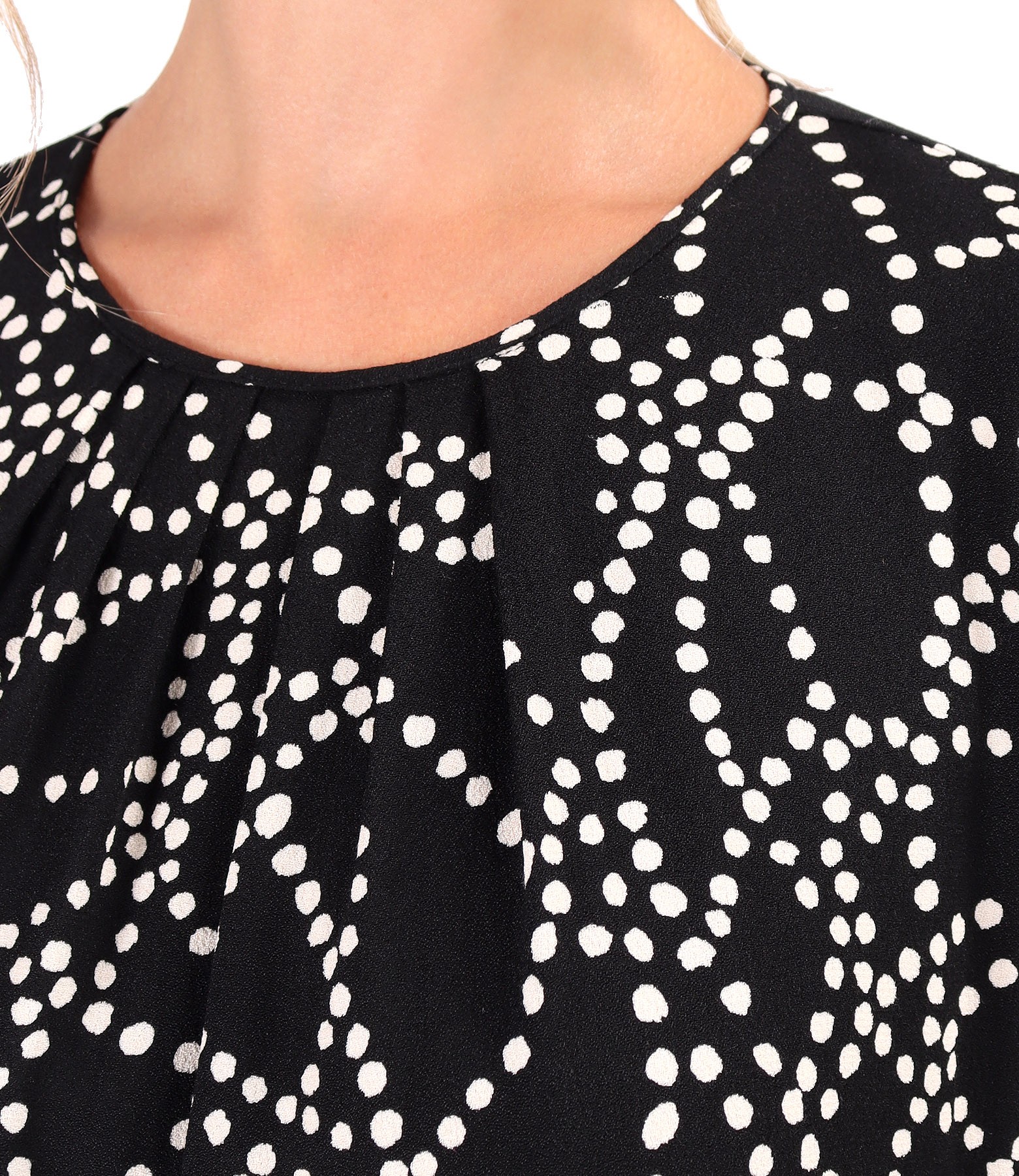 Viscose blouse with pleats at the neckline, printed with geometric motifs and long sleeves. It closes with a button on the middle back.