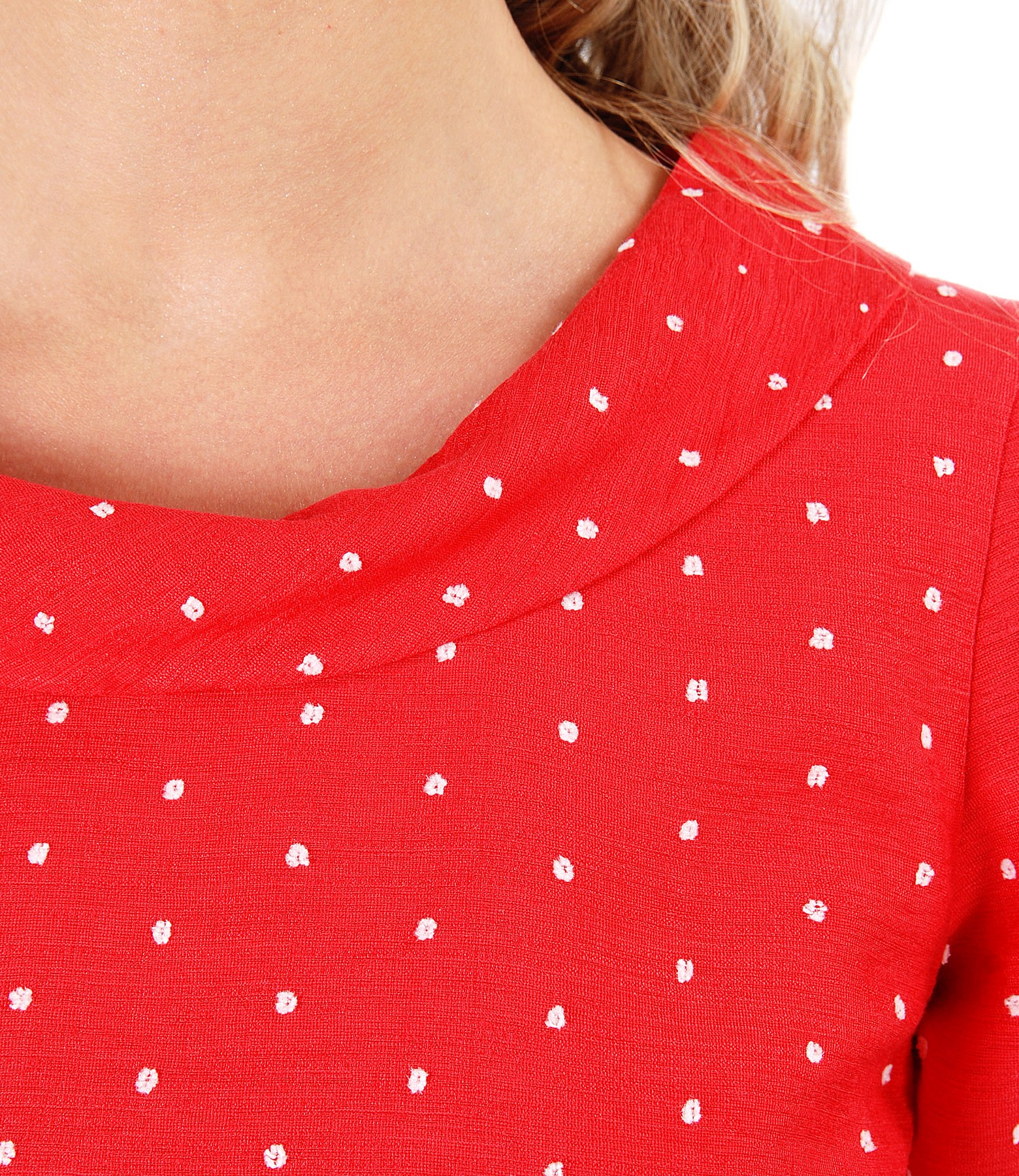 Midi dress made of viscose, embroidered with lace corner, doubled with viscose, short sleeves and round collar. Closes with hidden zipper on the middle back.