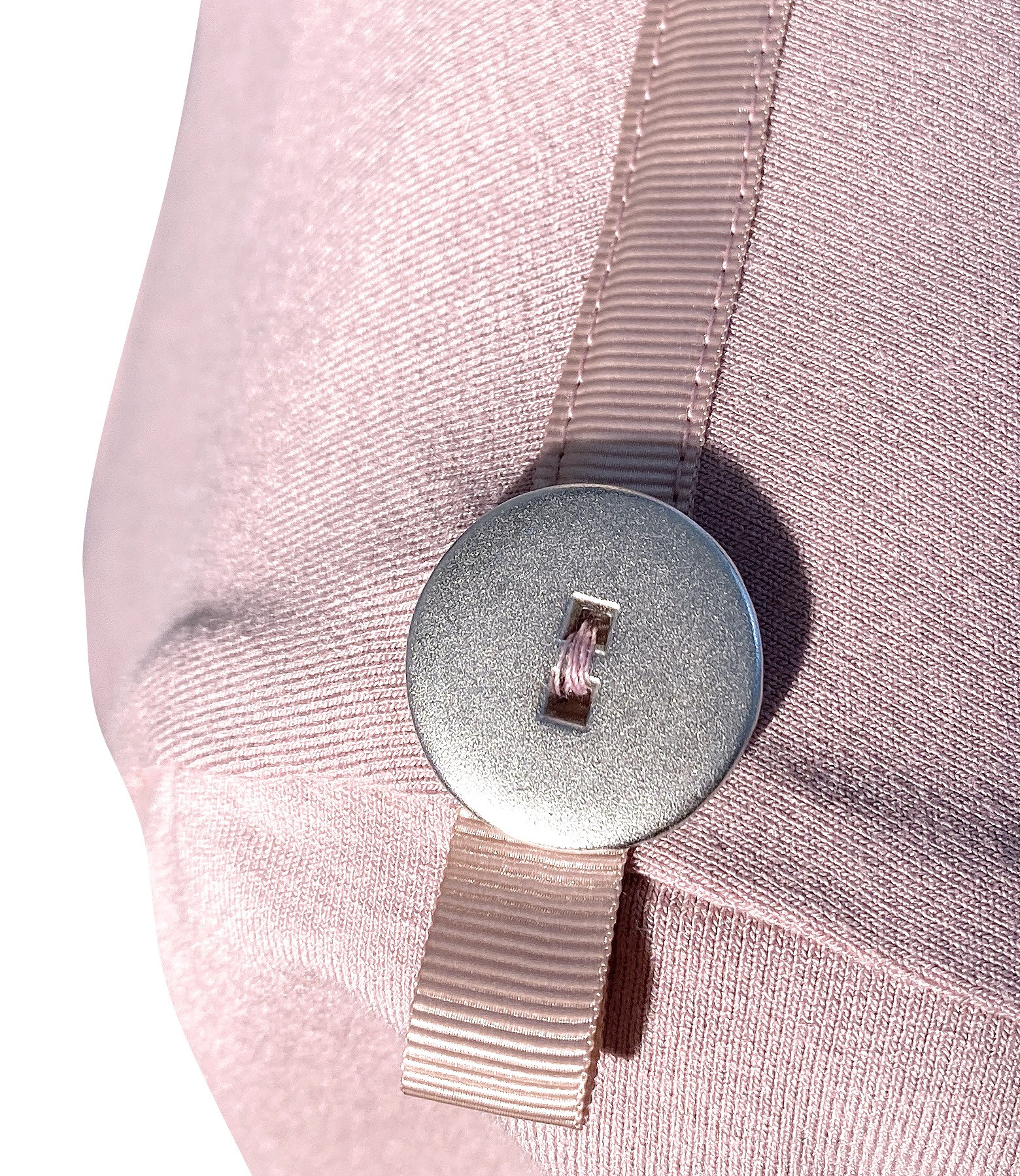Unlined dress made of elastic viscose jersey, with round neckline, side pockets and epaulettes with ripped band with buttons applied on the shoulders. Without closing system.