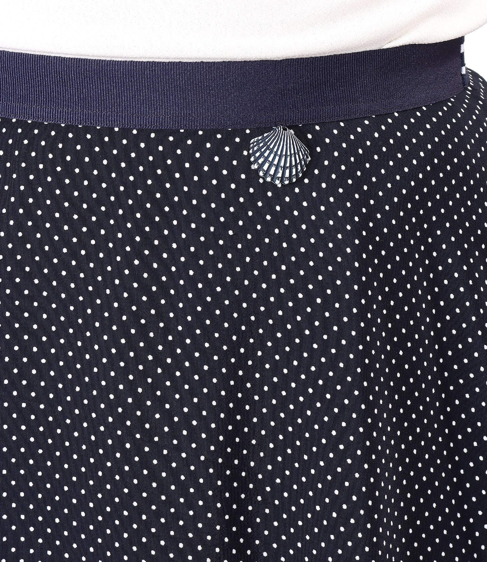 Flared skirt,unlined,made of printed viscose,elastic at the waist and decorative shell sewn at the waist.It closes with a hidden zipper on the middle of the back.
