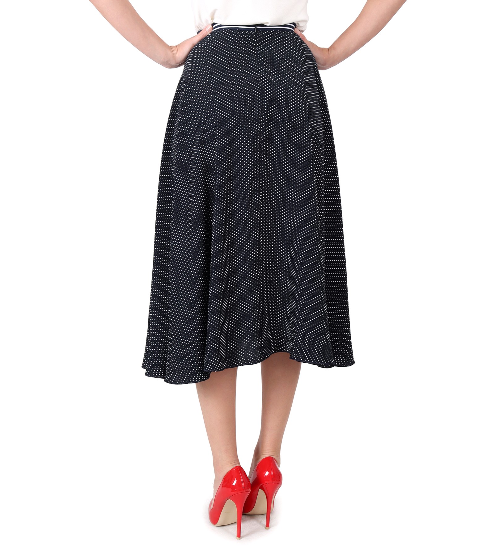 Viscose flared skirt printed with lace corner (Navy blue), size