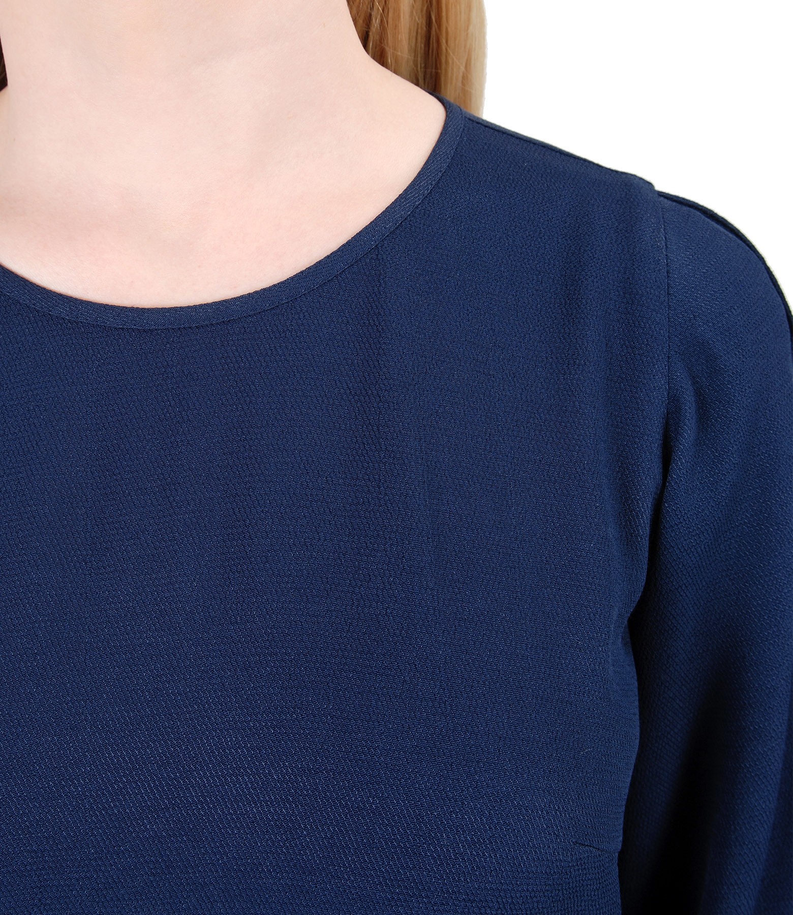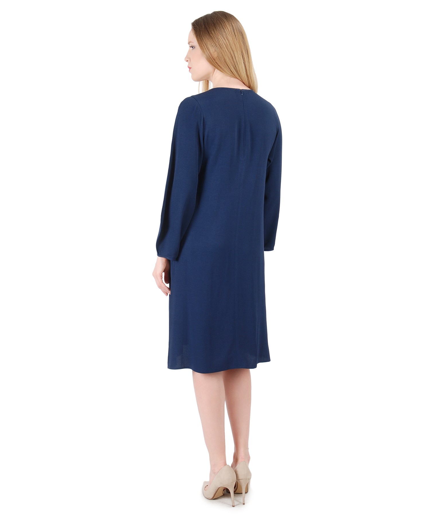 Viscose flaring dress, unlined, with long sleeves, side folds and round low-cut neck. Closes with hidden zipper on the middle back.