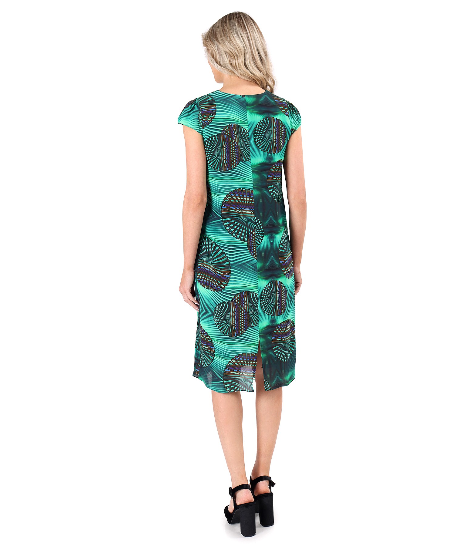 Viscose midi dress printed with geometric motifs (Green), size