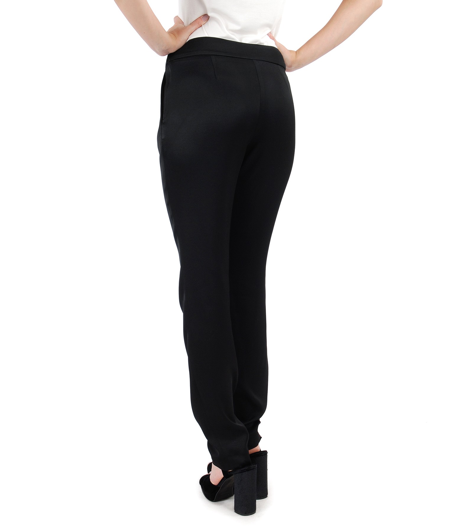 Viscose pants, with belt, front side folds and 2 side oblique pockets. Closes with hidden zipper on the left side.