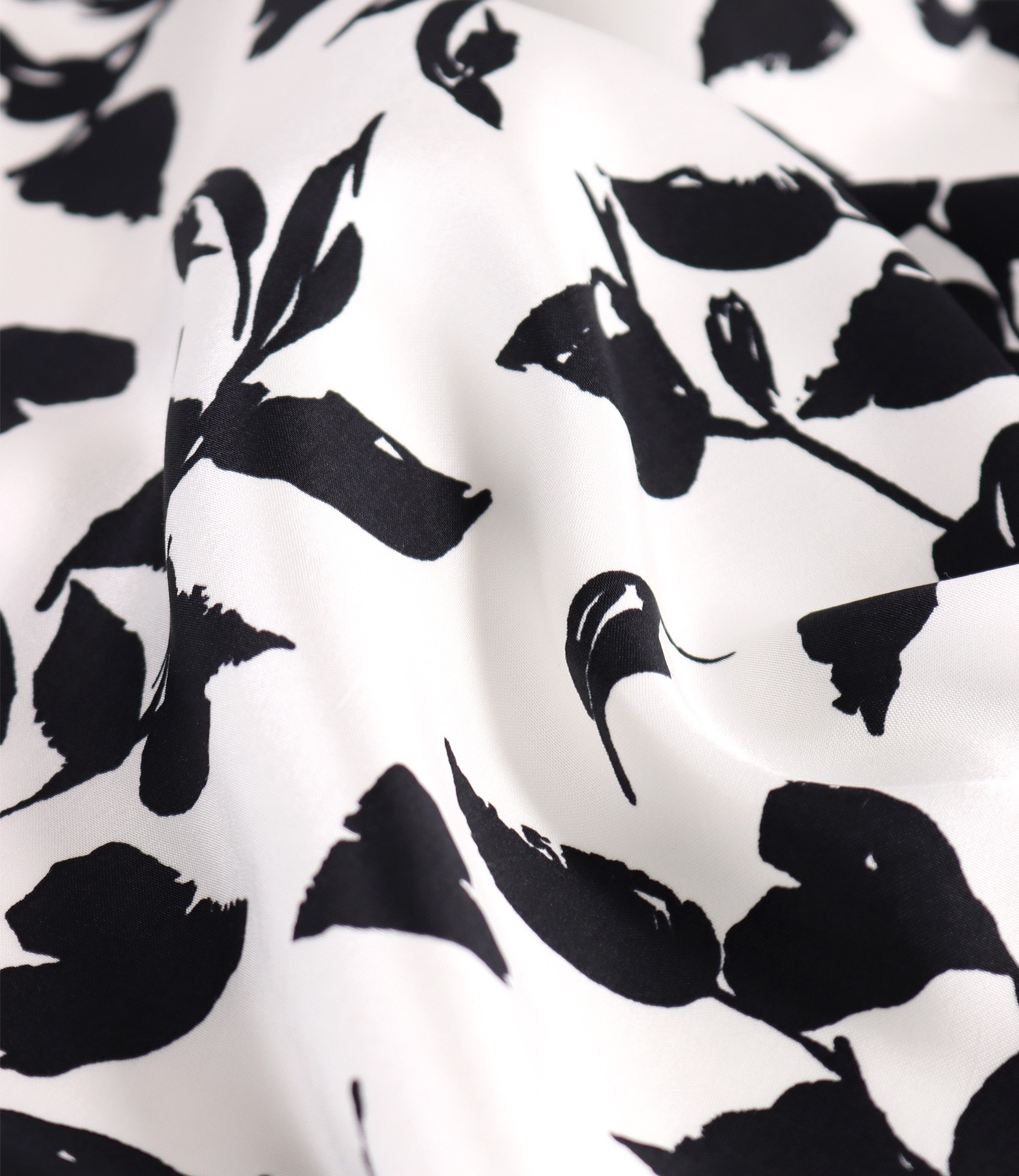 Viscose satin blouse with scarf collar, printed with floral motifs, with long sleeves and elastic at the ends.