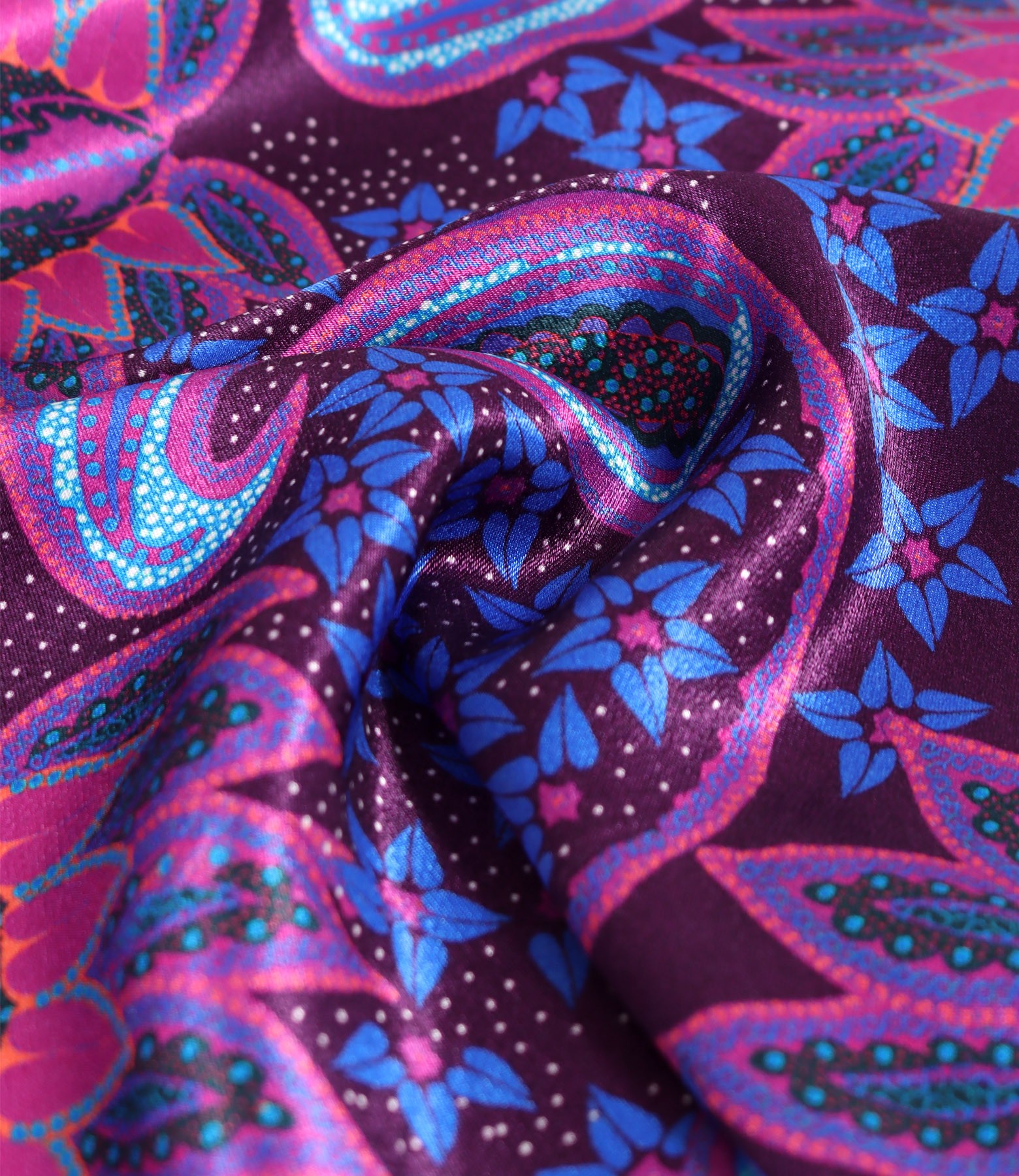 Viscose satin midi dress printed with paisley motifs (Cyclamen), size