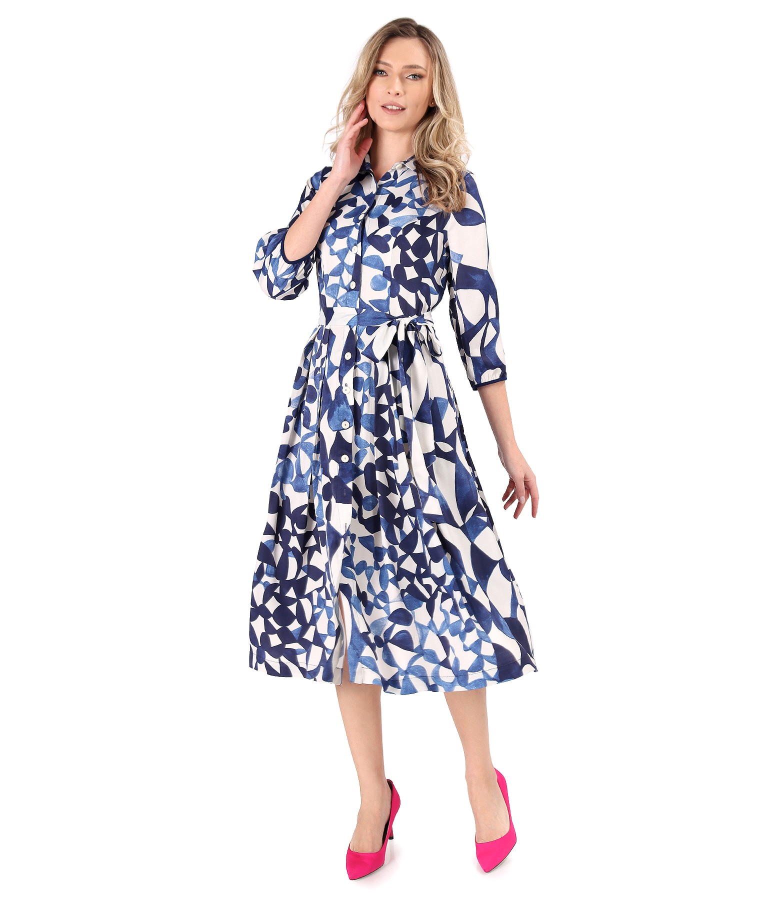 Viscose shirt-type dress printed with geometric motifs (Navy Blue), size