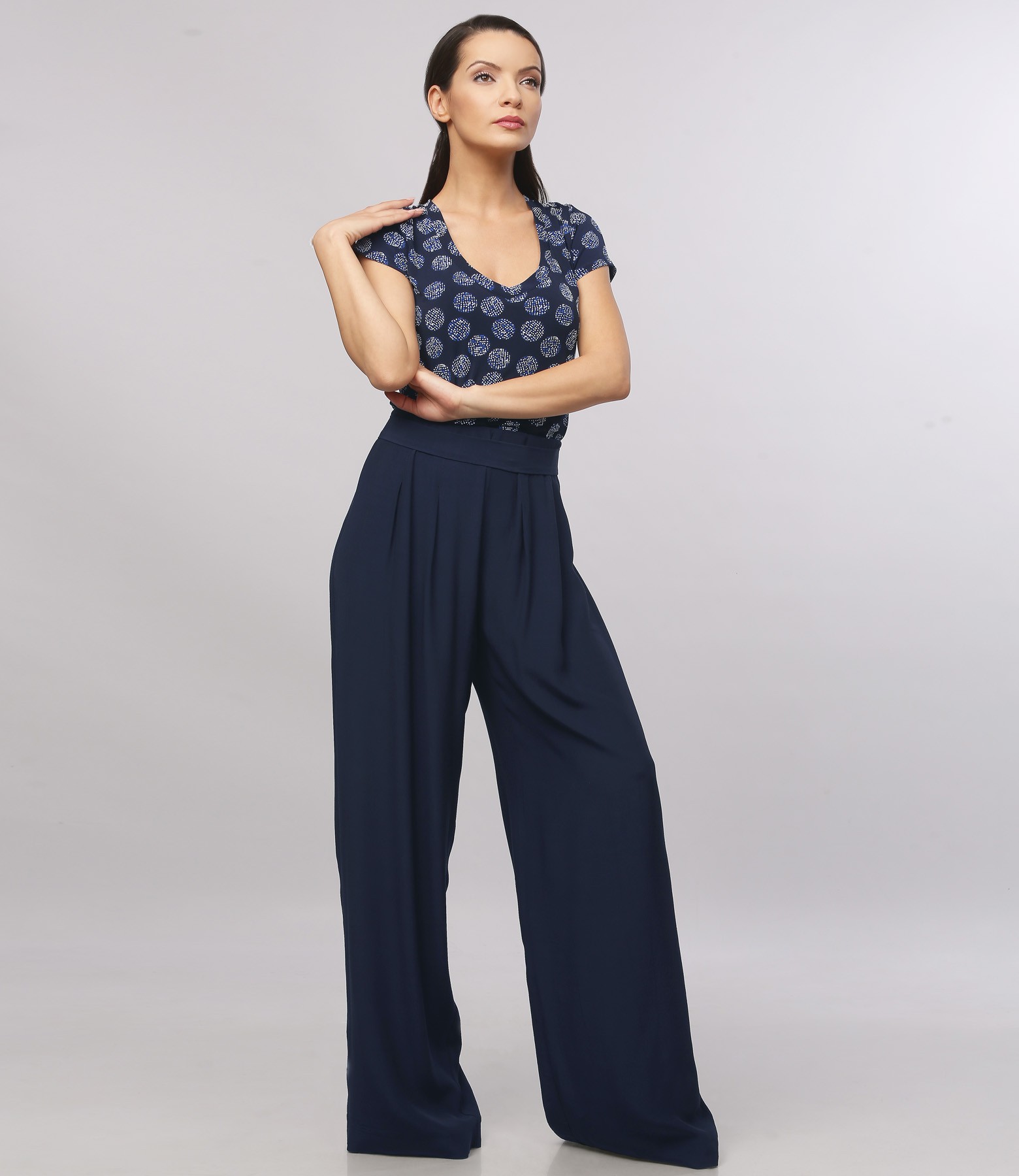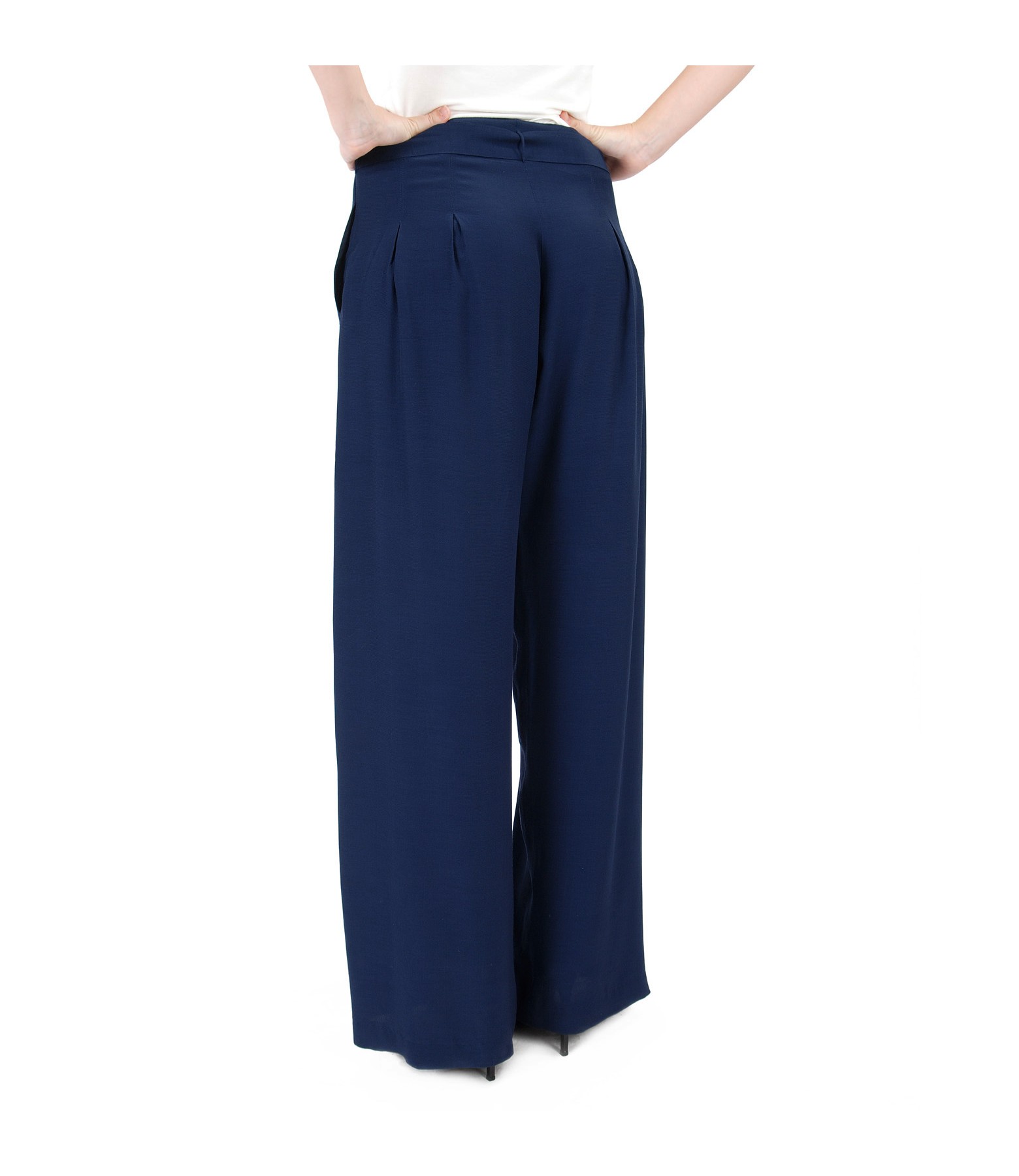 Viscose pants, with front and back folds, with removable waist belt and side pockets. Closes with hidden zipper on the side.