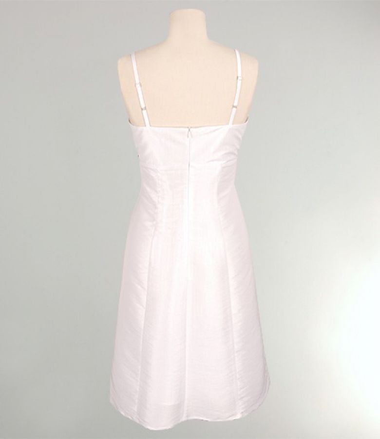 * dress with shoulder straps, skirt flared with gussets, 3 at front