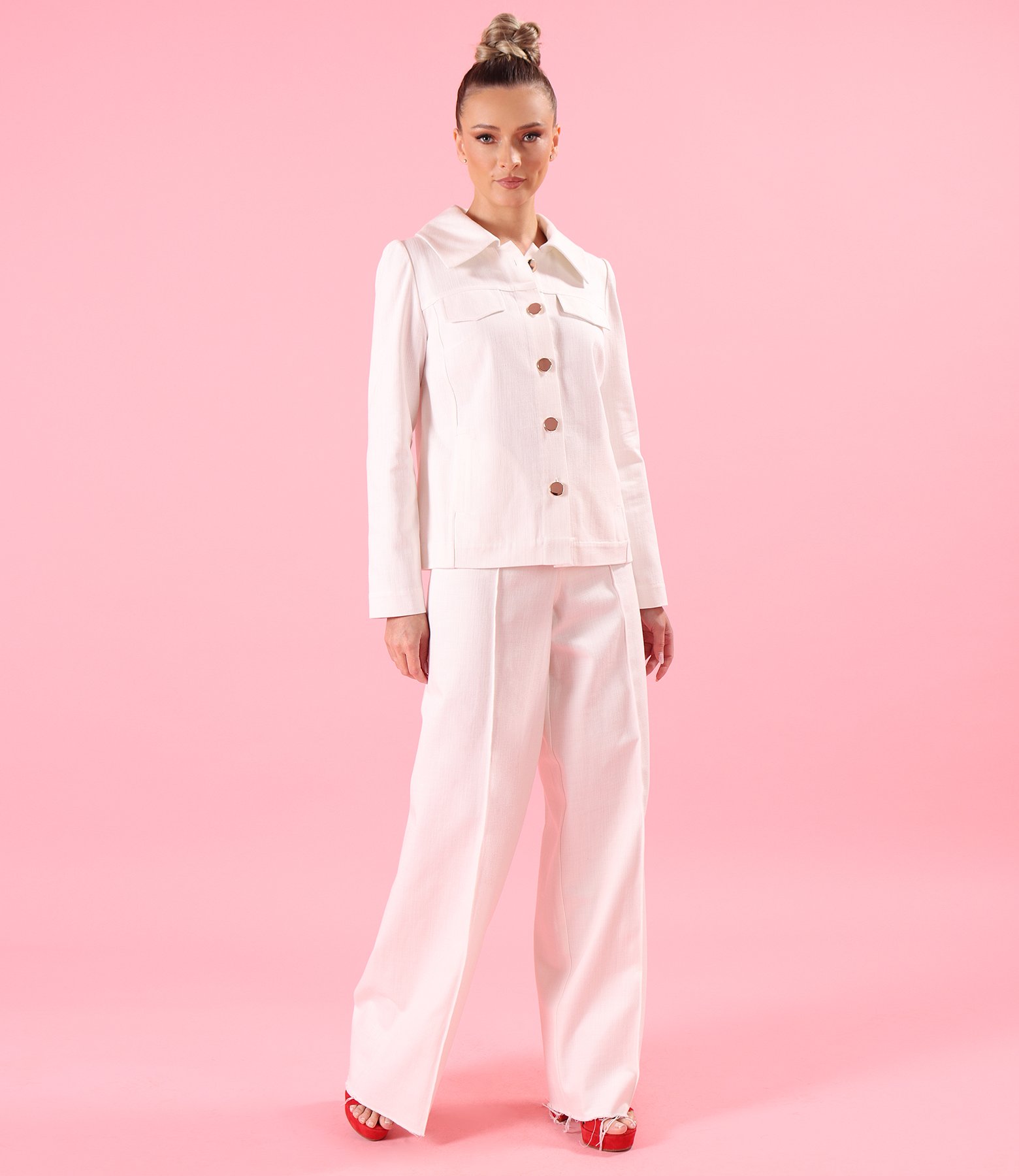 Wide-leg ivory denim-type cotton pants